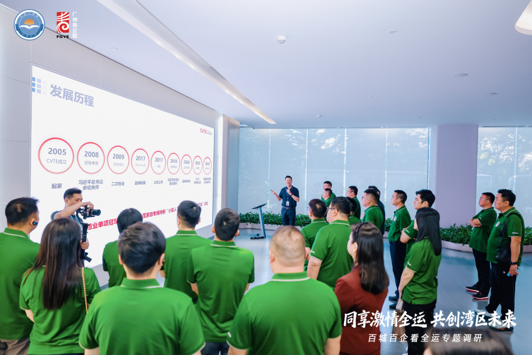 2025年11月9日,在第十五屆全運會于廣州開幕之際,“百城百企看全運”專題活動代表團百余人走進視源股份第二產業園,開展“黃埔制造當家”首站調研。